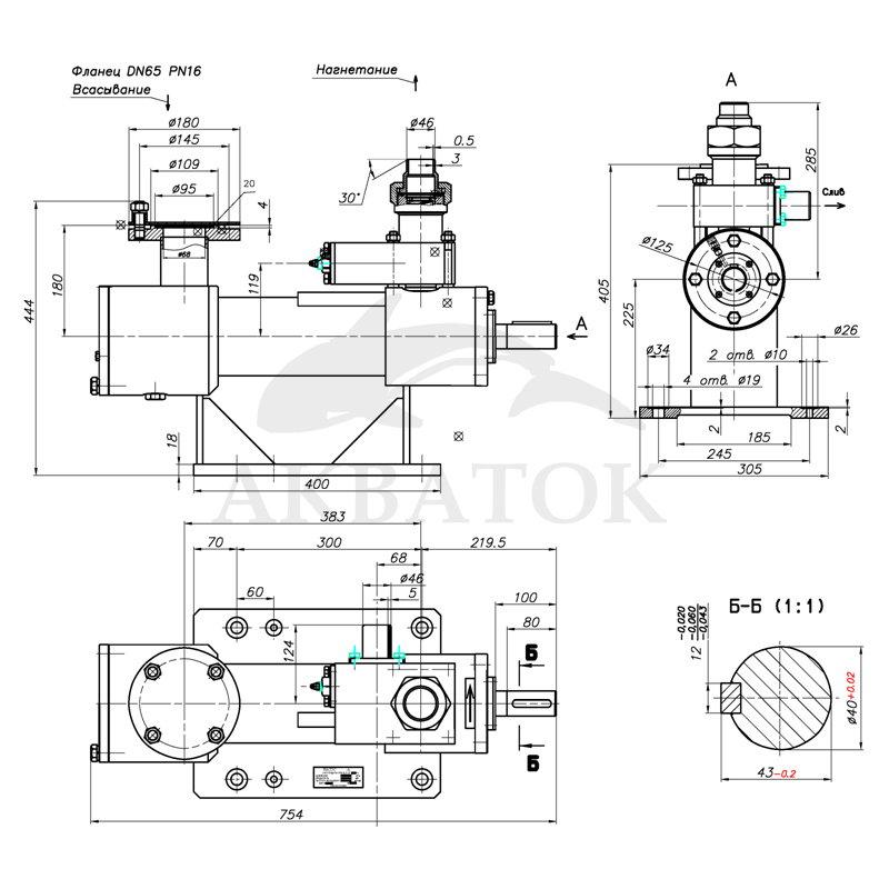 ГАБАРИТНЫЕ И ПРИСОЕДИНИТЕЛЬНЫЕ РАЗМЕРЫ НАСОСА МВН 30-320 А (на лапах)